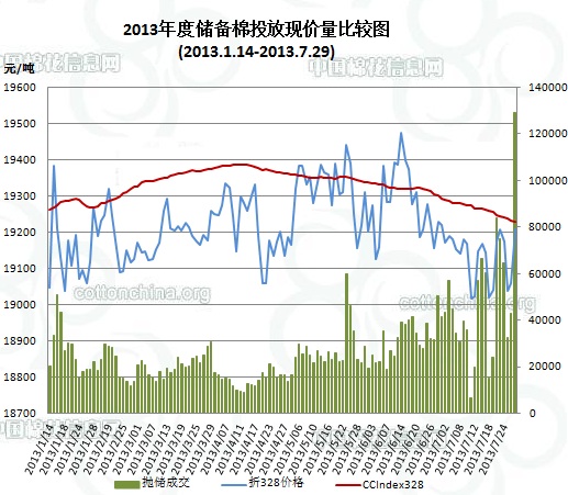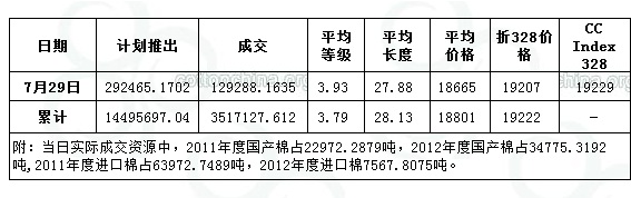 儲備棉投放日評(7.29):12年度進(jìn)口棉首次投放 日成交量近13萬噸