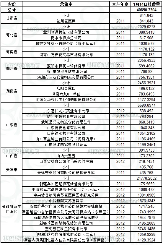1月14日儲備棉計劃投放40851噸