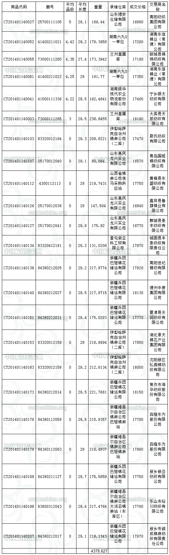1月14日儲備棉投放成交結果