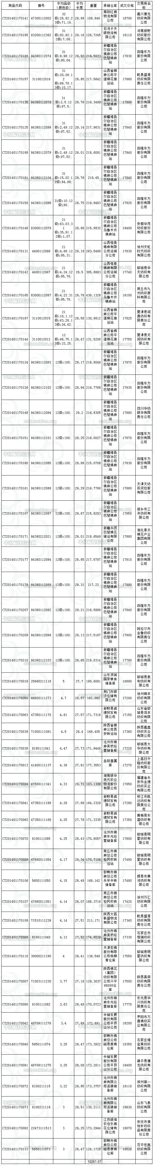1月17日儲備棉投放成交結果