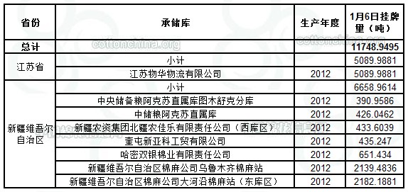 1月6日儲備棉投放資源中首增新國標(biāo)資源2012年度棉花11748.9495噸,其中內(nèi)地庫5089.9881噸,新疆庫6658.9614噸。