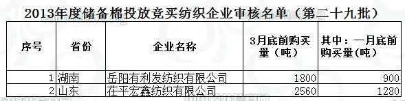 2013年度儲(chǔ)備棉投放競(jìng)買紡織企業(yè)審核名單(第二十九批)