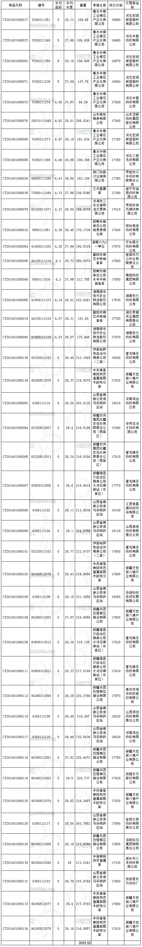 1月9日儲(chǔ)備棉投放成交結(jié)果