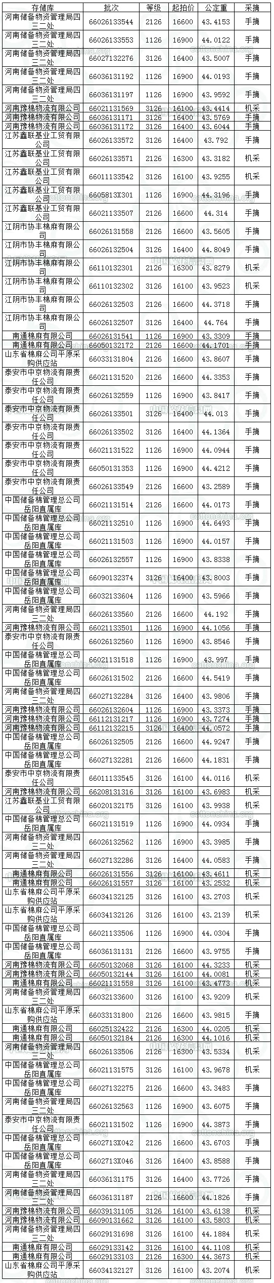 各交易商: 定于10月15日投放新疆兵團(tuán)競(jìng)賣棉花3512.4452噸,存儲(chǔ)庫(kù)全為內(nèi)地庫(kù)區(qū)。相關(guān)批次公檢數(shù)據(jù)見附件。具體庫(kù)點(diǎn)如下: