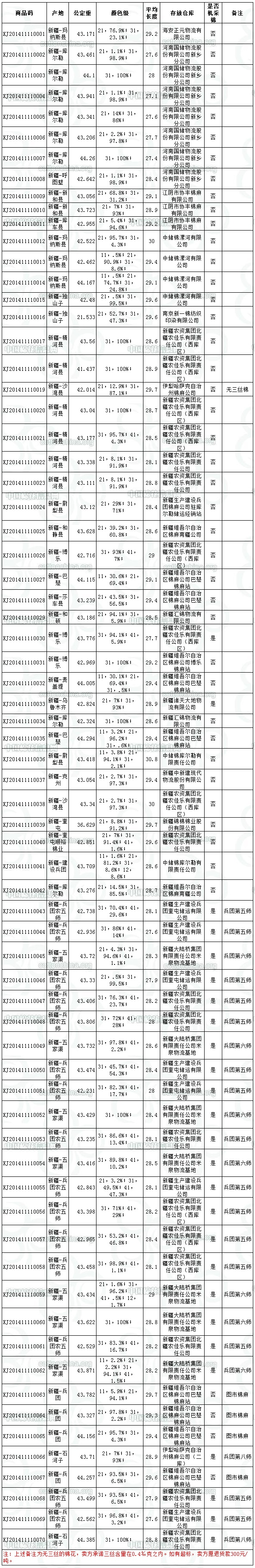 各交易商: 全國(guó)棉花交易市場(chǎng)定于11月11日上市新疆棉競(jìng)賣資源3002.421噸,其中新疆庫(kù)區(qū)資源2331.401噸(手摘棉1205.072噸,機(jī)采棉1126.329噸),內(nèi)含兵團(tuán)棉1215.251噸;內(nèi)地庫(kù)區(qū)資源671.02噸(手摘棉671.02噸)。當(dāng)日競(jìng)賣資源中有1批無(wú)三絲棉。賣方承諾每噸三絲含量在0.4‰克之內(nèi)。如有超標(biāo),賣方愿退貨款300元/噸。相關(guān)詳細(xì)數(shù)據(jù)見(jiàn)附件。具體庫(kù)點(diǎn)如下: