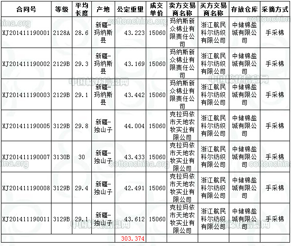 新疆棉競賣交易評述(11.19):成交比例8.65% 均為內(nèi)地庫資源