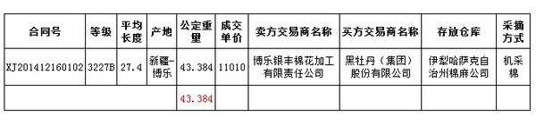 新疆棉競賣交易評述(12.16):成交43噸 成交比例下降