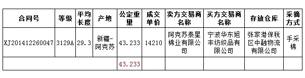 12月26日新疆棉競賣交易成交結(jié)果