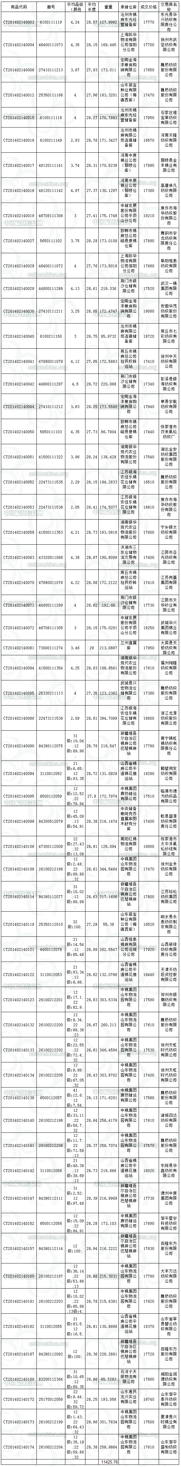 2月14日儲備棉投放成交結(jié)果