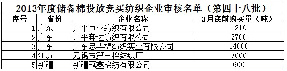 2013年度儲備棉投放競買紡織企業(yè)審核名單(第四十八批)