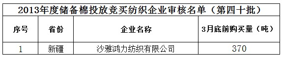 2013年度儲備棉投放競買紡織企業(yè)審核名單(第四十批)