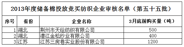 2013年度儲備棉投放競買紡織企業(yè)審核名單(第五十五批)