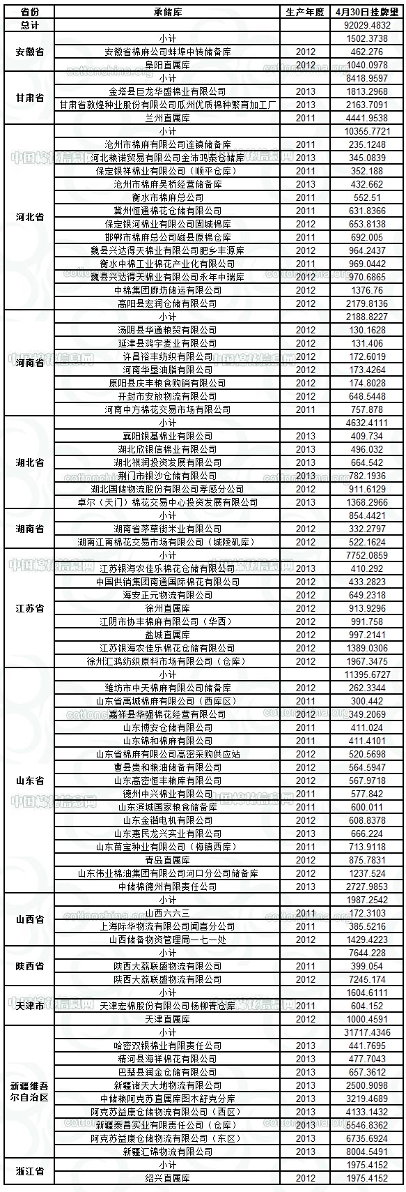 4月30日儲備棉計劃投放92029噸
