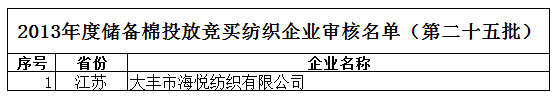2013年度儲備棉投放競買紡織企業(yè)審核名單新(第二十五批)