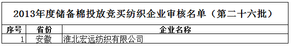 2013年度儲(chǔ)備棉投放競(jìng)買紡織企業(yè)審核名單新(第二十六批)