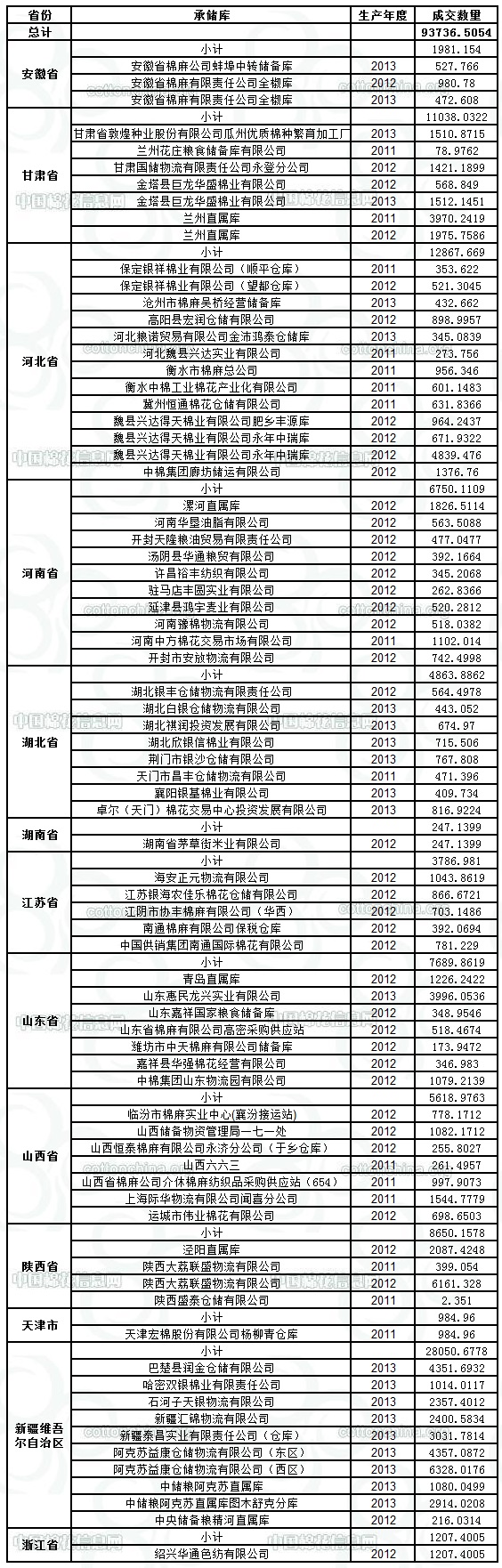 定于6月11日出庫銷售儲備棉93736.5054噸,其中2011年資源12629.8829噸,2012年資源40646.7936噸,2013年資源40459.8289噸。相關(guān)批次公檢數(shù)據(jù)見附件,具體庫點(diǎn)如下:
