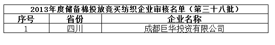 2013年度儲(chǔ)備棉投放競(jìng)買紡織企業(yè)審核名單新(第三十八批)