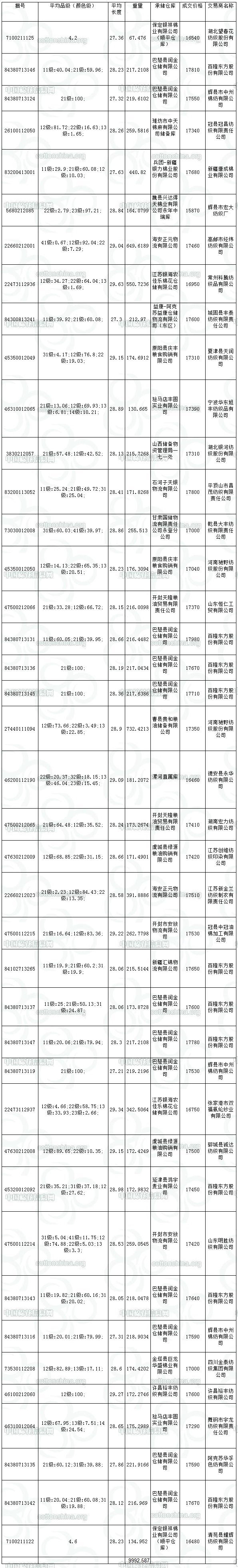 儲備棉投放日評(7.24):實際成交9993噸 累計成交226.37萬噸