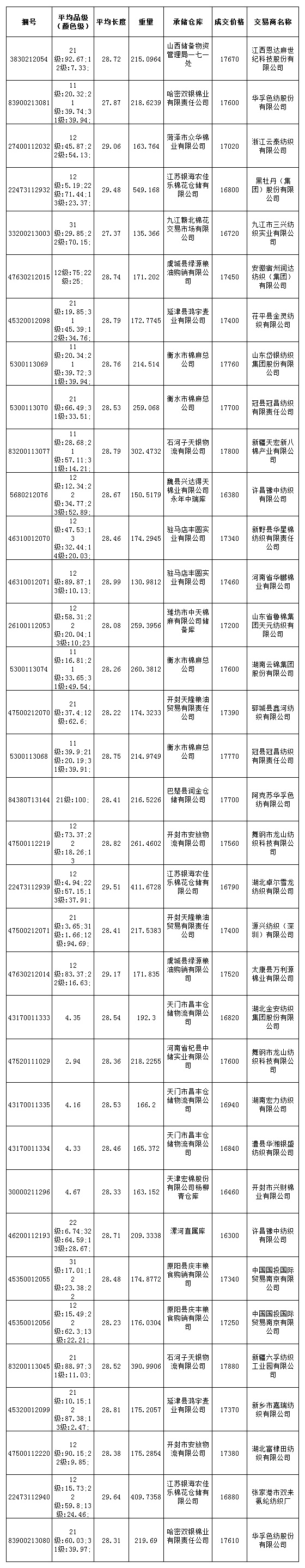 7月29日儲(chǔ)備棉投放成交結(jié)果