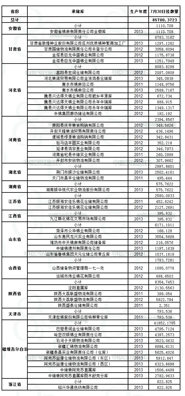 7月30日儲(chǔ)備棉計(jì)劃投放85700噸