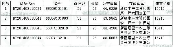 8月11日兵團(tuán)棉花競賣成交結(jié)果
