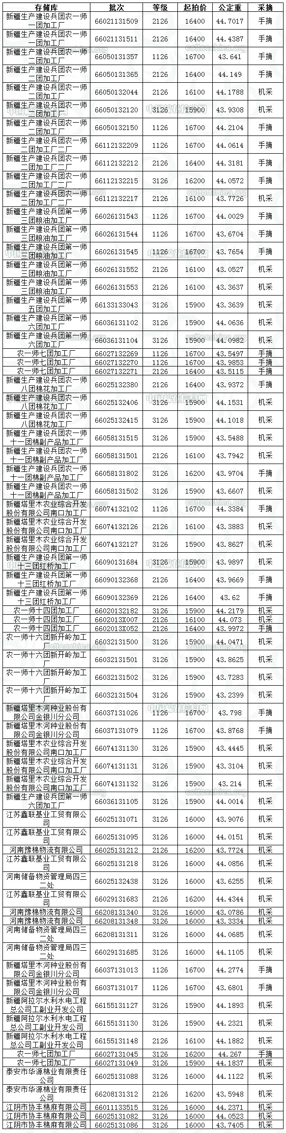 各交易商: 定于8月15日投放新疆兵團競賣棉花3072.2165噸,其中內(nèi)地庫占658.1685噸。相關(guān)批次公檢數(shù)據(jù)見附件。具體庫點如下:
