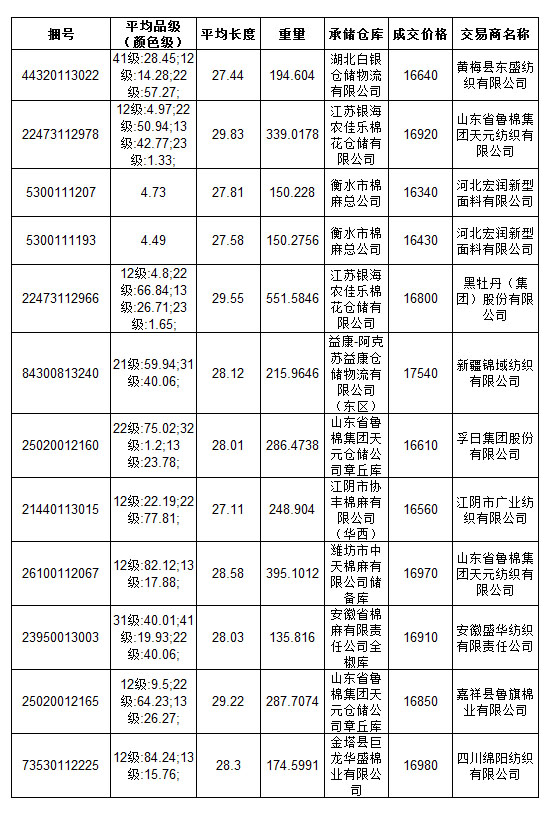 錦橋紡織網(wǎng)—資訊頻道> 棉花信息> 拋儲>正文 8月18日儲備棉投放成交結(jié)果