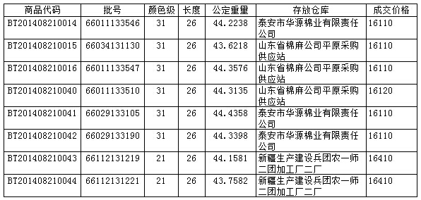 8月21日兵團棉花競賣成交結(jié)果