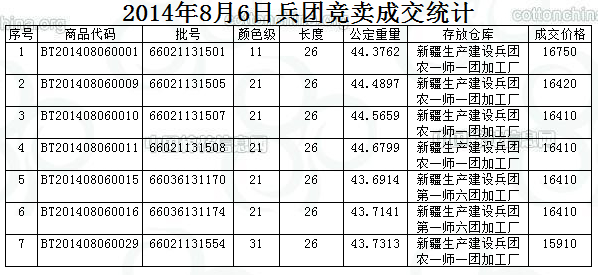 8月6日兵團(tuán)棉花競賣成交結(jié)果