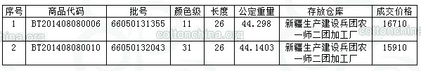 8月8日兵團棉花競賣成交結(jié)果