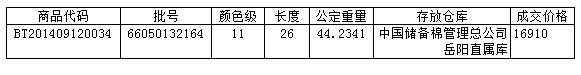 9月12日兵團(tuán)棉花競(jìng)賣(mài)成交結(jié)果