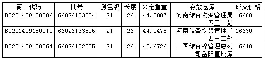 9月15日兵團(tuán)棉花競(jìng)賣成交結(jié)果