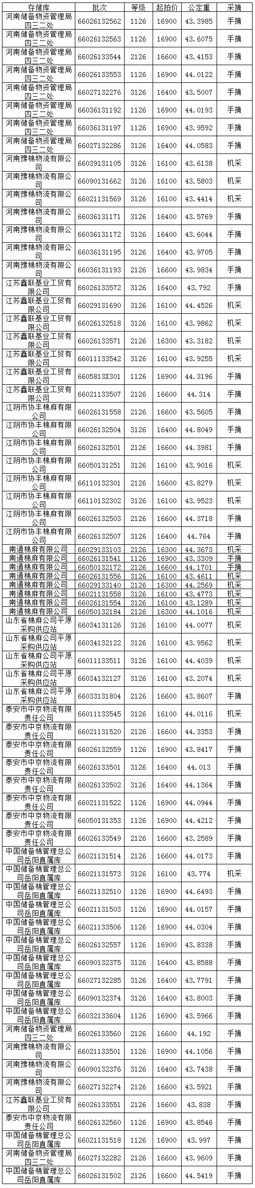 定于9月16日投放新疆兵團競賣棉花3074.4546噸,存儲庫全為內(nèi)地庫區(qū)。相關(guān)批次公檢數(shù)據(jù)見附件。具體庫點如下: