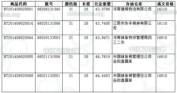 錦橋紡織網(wǎng)—資訊頻道> 棉花信息> 拋儲>正文 9月2日兵團(tuán)棉花競賣成交結(jié)果