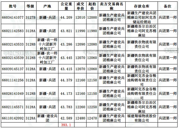 10月10日兵團(tuán)棉競(jìng)賣交易成交結(jié)果
