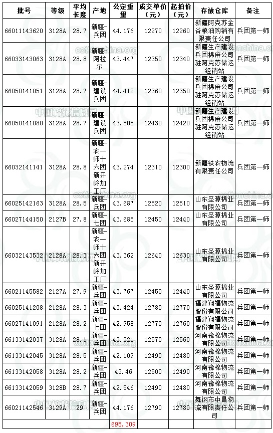 10月12日兵團棉競賣交易成交結(jié)果