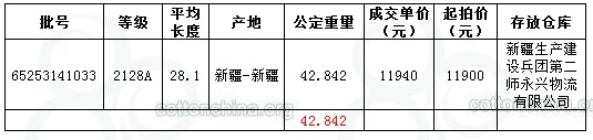 10月13日新疆棉競賣交易推出資源量為5053.704噸,實(shí)際成交42.842噸,成交比例0.85%;成交價(jià)11940元/噸,平均長度28.10。