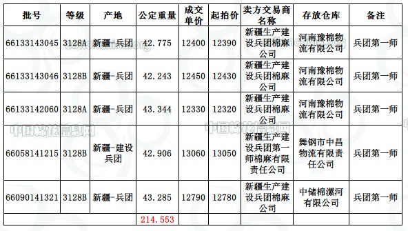——新疆生產(chǎn)建設(shè)兵團競賣專場成交結(jié)果