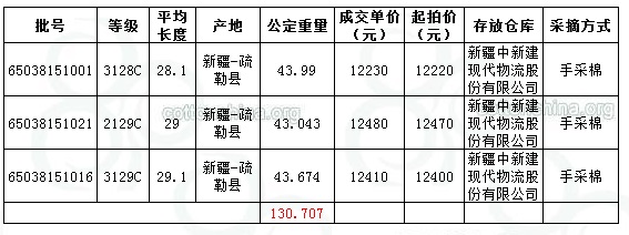 當(dāng)日成交資源均為2015年度新花資源(手摘棉),共計3批;均加價10元成交。