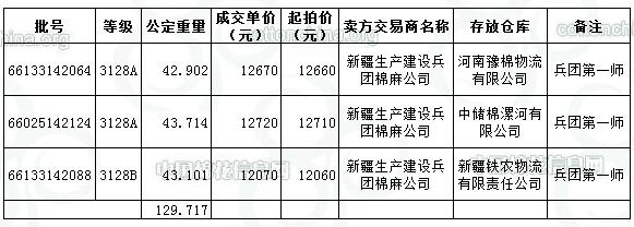 11月20日新疆棉競賣交易兵團(tuán)專場推出資源量為8764.204噸,(全部為兵團(tuán)第一師資源),實(shí)際成交129.717噸,成交率1.48%,最高成交價12720元/噸,最低成交價12070元/噸,成交平均價12487元/噸,平均長度28.57。中國棉花信息網(wǎng)統(tǒng)計,截至11月20日,兵團(tuán)已累計成交資源44474.738噸。