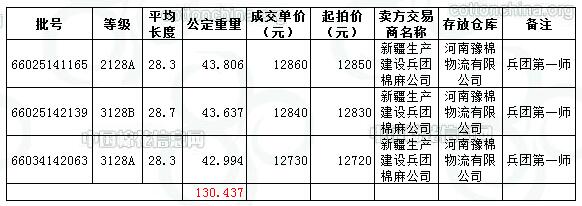當(dāng)日成交資源3批均在內(nèi)地庫(河南豫棉物流有限公司),均加價(jià)10元/噸成交。