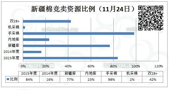 全國棉花交易市場定于11月24日上市新疆棉競賣資源5045.146噸。其中新疆庫區(qū)資源3872.3438噸,內地庫區(qū)資源1172.802噸。其中雙28+資源占2141.4198噸。