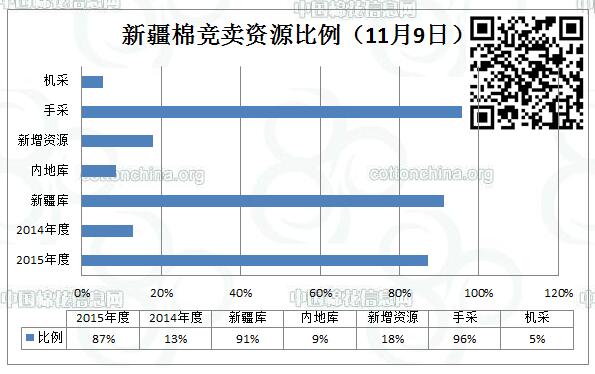 全國棉花交易市場定于11月9日上市新疆棉競賣資源4944.882噸。其中新疆庫區(qū)資源4513.876噸,內(nèi)地庫區(qū)資源431.006噸。當(dāng)日有4批雙29資源性價比較高,存放在中新建倉庫;6批雙28資源性價比較高,存放在兵團(tuán)棉麻公司駐庫爾勒儲運經(jīng)銷站和中新建倉庫。