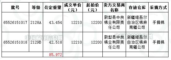 12月11日新疆棉競賣南疆公司專場交易推出資源量為3396.644噸,實際成交85.972噸,成交比例2.53%;成交均價12210元/噸,平均長度29。