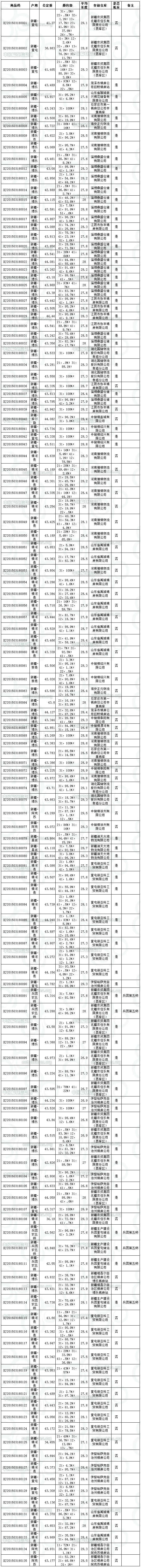 各交易商: 全國棉花交易市場定于3月18日上市新疆棉競賣資源5827.448噸,其中新疆庫區(qū)資源2485.81噸(手摘棉1012.27噸,最低起報價10500元/噸;機采棉1473.54噸,最低起報價12200元/噸),內(nèi)含兵團棉257.3噸(最低起報價13100元/噸);內(nèi)地庫區(qū)資源3341.638噸(手摘棉1734.429噸,最低起報價13450元/噸;機采棉1607.209噸,最低起報價13200元/噸)。相關(guān)詳細數(shù)據(jù)見附件。具體庫點如下: