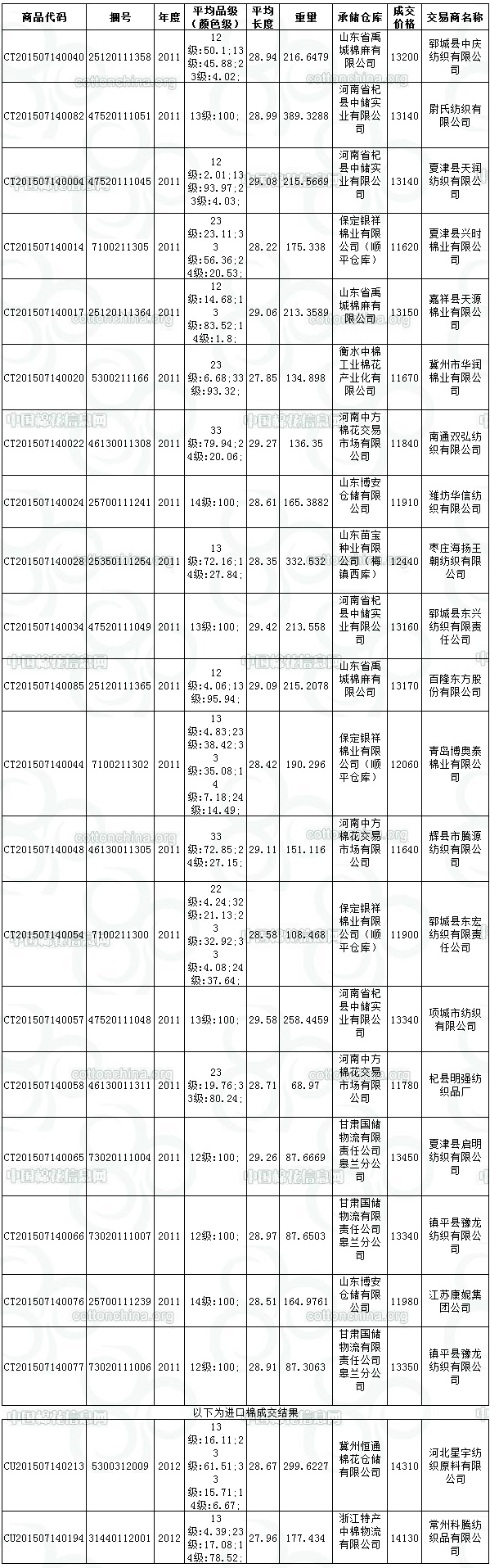 7月14日儲(chǔ)備輪出成交4090.1267噸,其中2011年度國(guó)產(chǎn)棉成交3613.07噸,2012年度進(jìn)口棉成交477.0567噸。