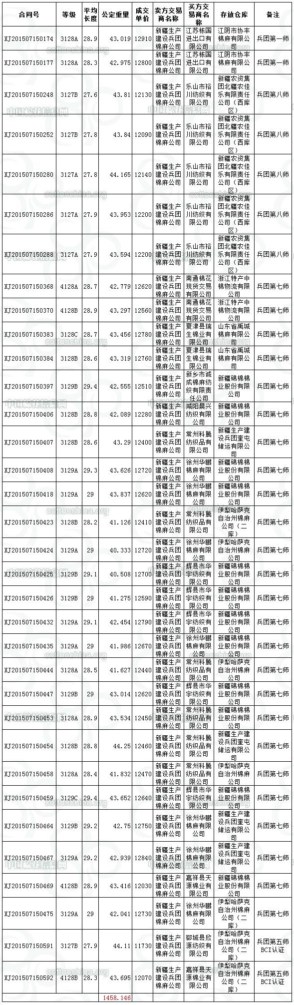 7月15日兵團(tuán)棉競(jìng)賣交易成交結(jié)果