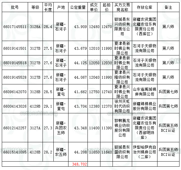 7月24日兵團(tuán)棉競(jìng)賣交易成交結(jié)果