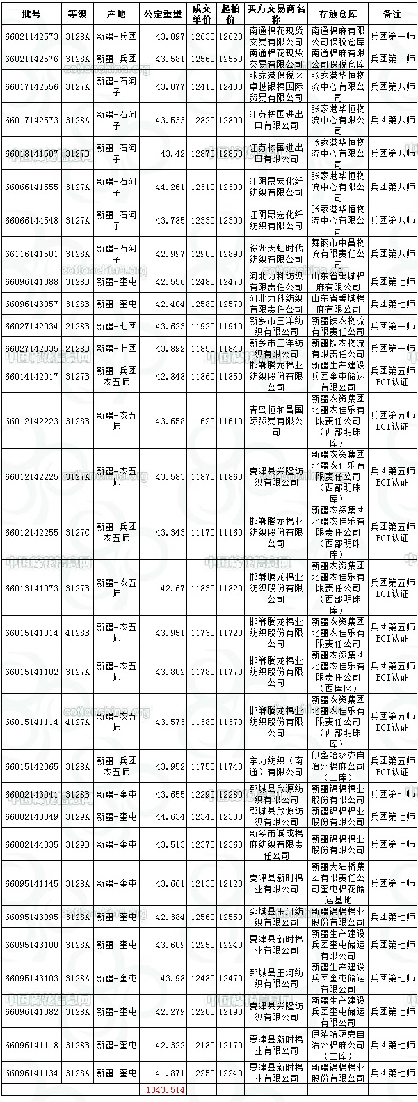 7月27日兵團(tuán)棉競(jìng)賣交易成交結(jié)果