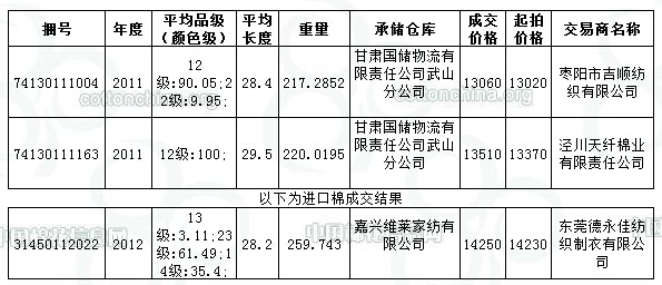 7月28日儲備輪出成交697.0477噸,2011年度國產(chǎn)棉:437.3047噸;2012年度進(jìn)口棉:259.743。